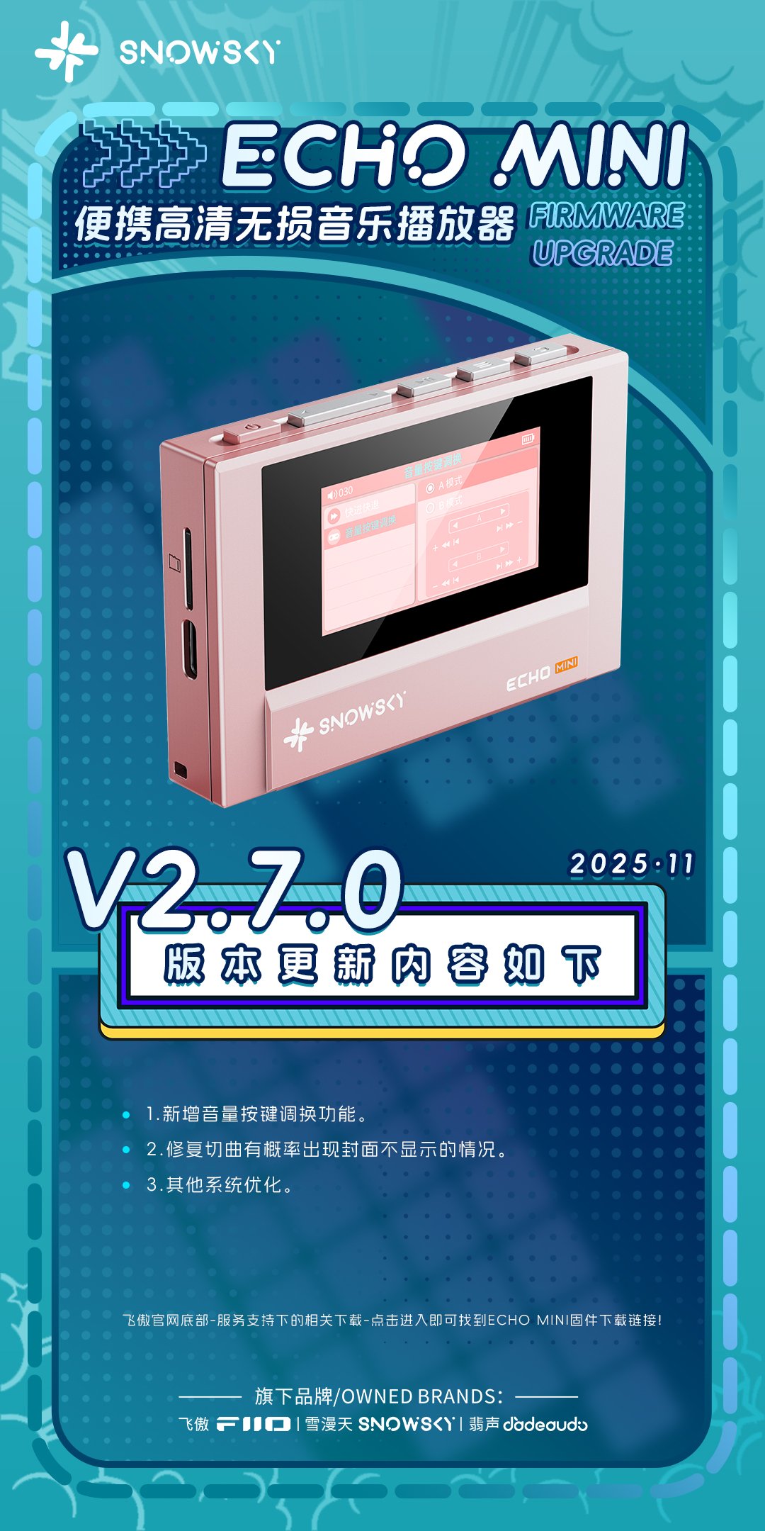 雪漫天纯音播放器ECHO MINI固件更新,新增音量按键调换功能!