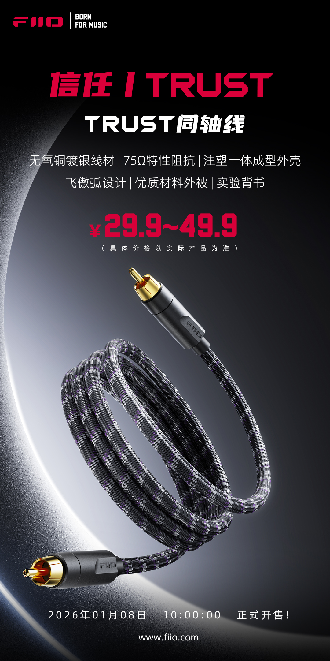 飞傲信任 | TRUST同轴线官方售价29.9/39.9/49.9元,将于1月8日10时在天猫、京东、拼多多开售!