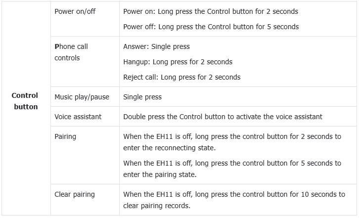 5. EH11 controls and indicator status guide