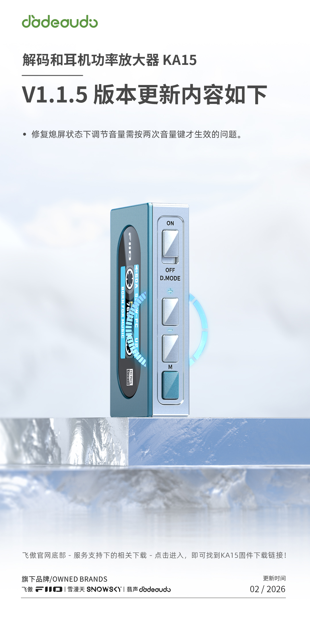 KA15固件更新,修复熄屏状态下调节音量需按两次音量键才生效的问题