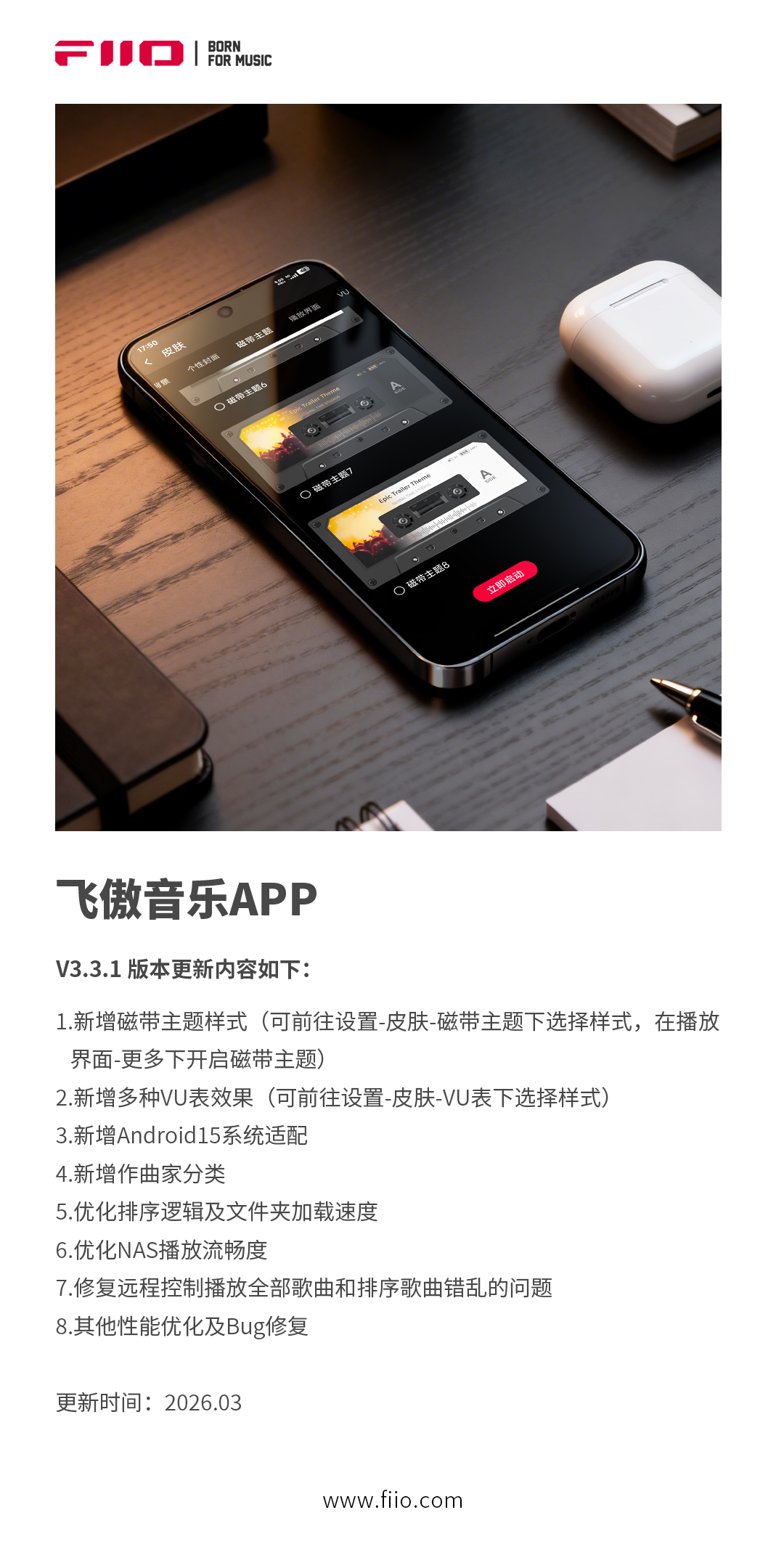 飞傲音乐APP V3.3.1版本更新,新增磁带主题样式!