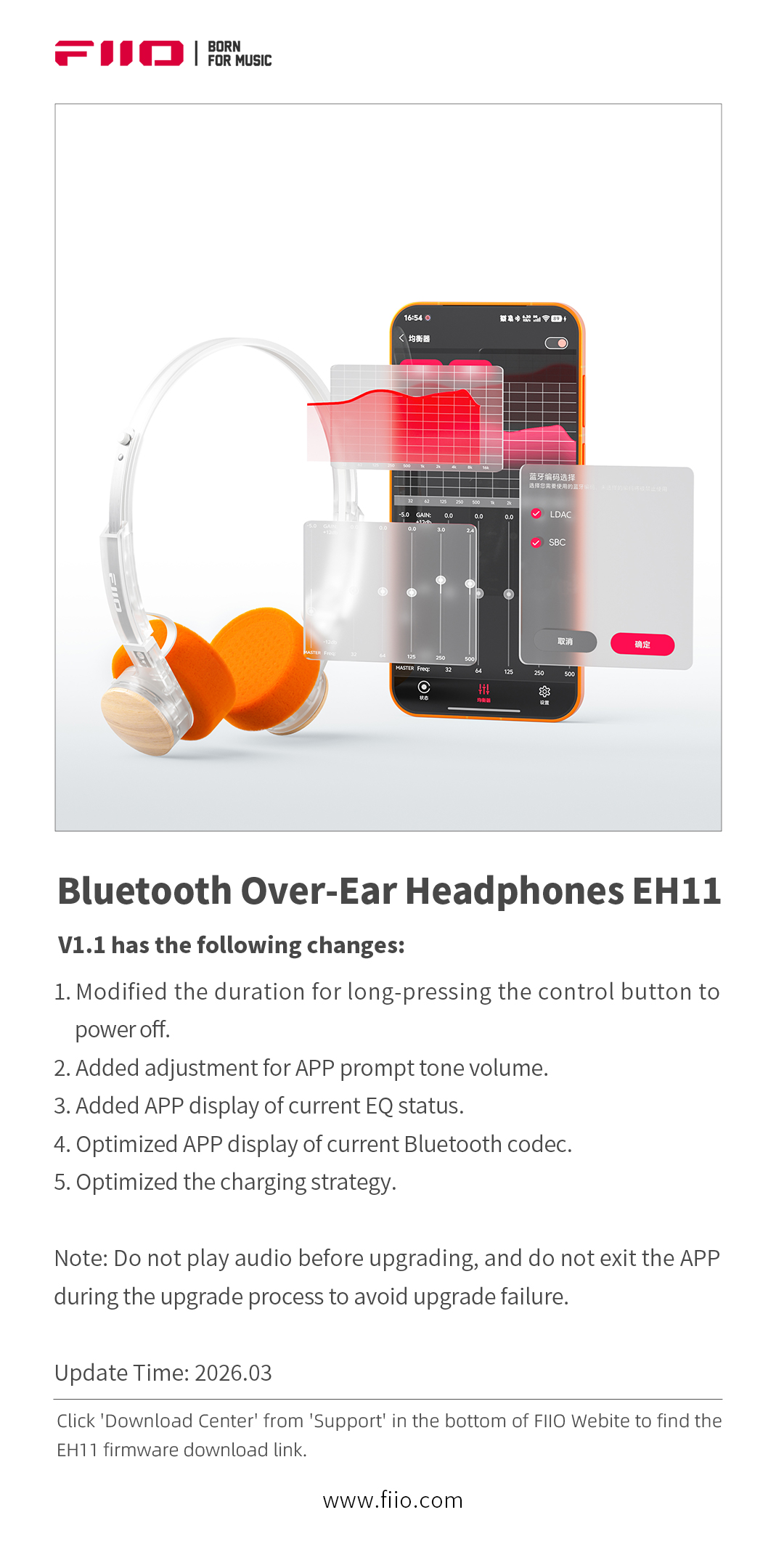 The new firmware V1.1 for FIIO EH11 is now available!