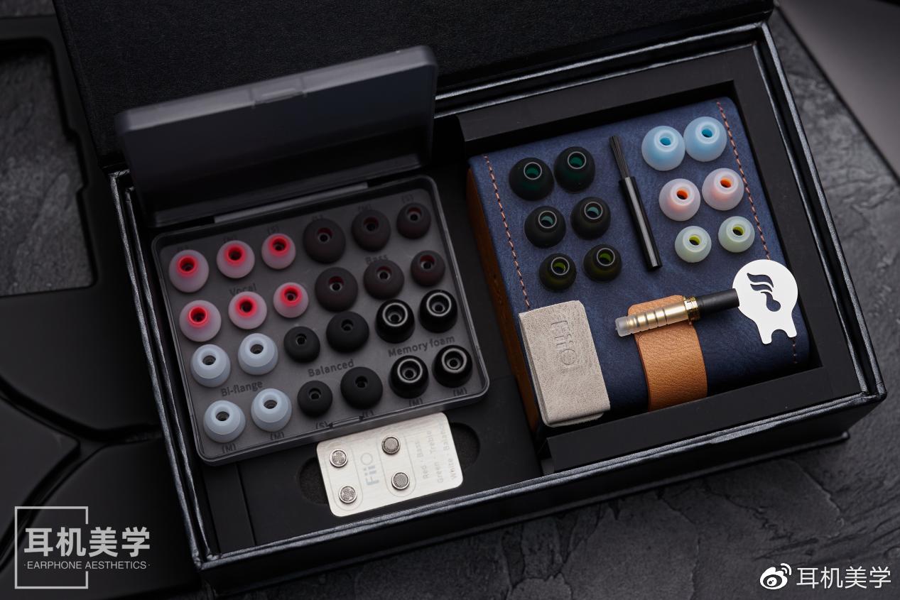拿开塑料衬板,就露出了配件,FH7S这次赠送的配件可谓是琳琅满目,光耳套就有18对耳套之多,涵盖了海绵、双节、以及飞傲自家的HS18。还有两对滤网,mmcx拔线器和各种可换插头。应当说是非常用心了。飞傲家的这个可换插头还是让我非常惊艳的,乍一看你都看不出来这是可换插头,可以说兼顾了美观和稳定性。