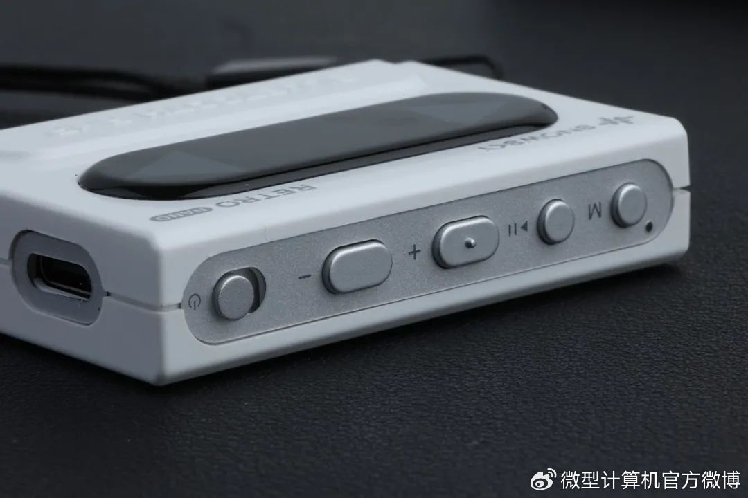 让人产生记忆点的产品设计可以有很多种路径,RETRO NANO选择的是“复古”这一方向。初见它时,我的脑海中立刻浮现出磁带机的身影。无论是其方正的造型、正面的“视窗”屏幕设计,还是顶部的按键布局,都巧妙地融入了磁带机的经典元素。尽管它的体积仅相当于一个火柴盒般大小,但“磁带机”的精髓却丝毫未减,生动地再现了复古风情。RETRO NANO目前提供蓝色和白色两种配色选择,我觉得后者的视觉整体性会更强一些。