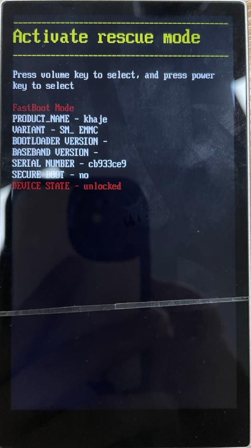 3. In fastboot mode, press the volume up and down buttons to select Activate rescue mode, and press the power button to start