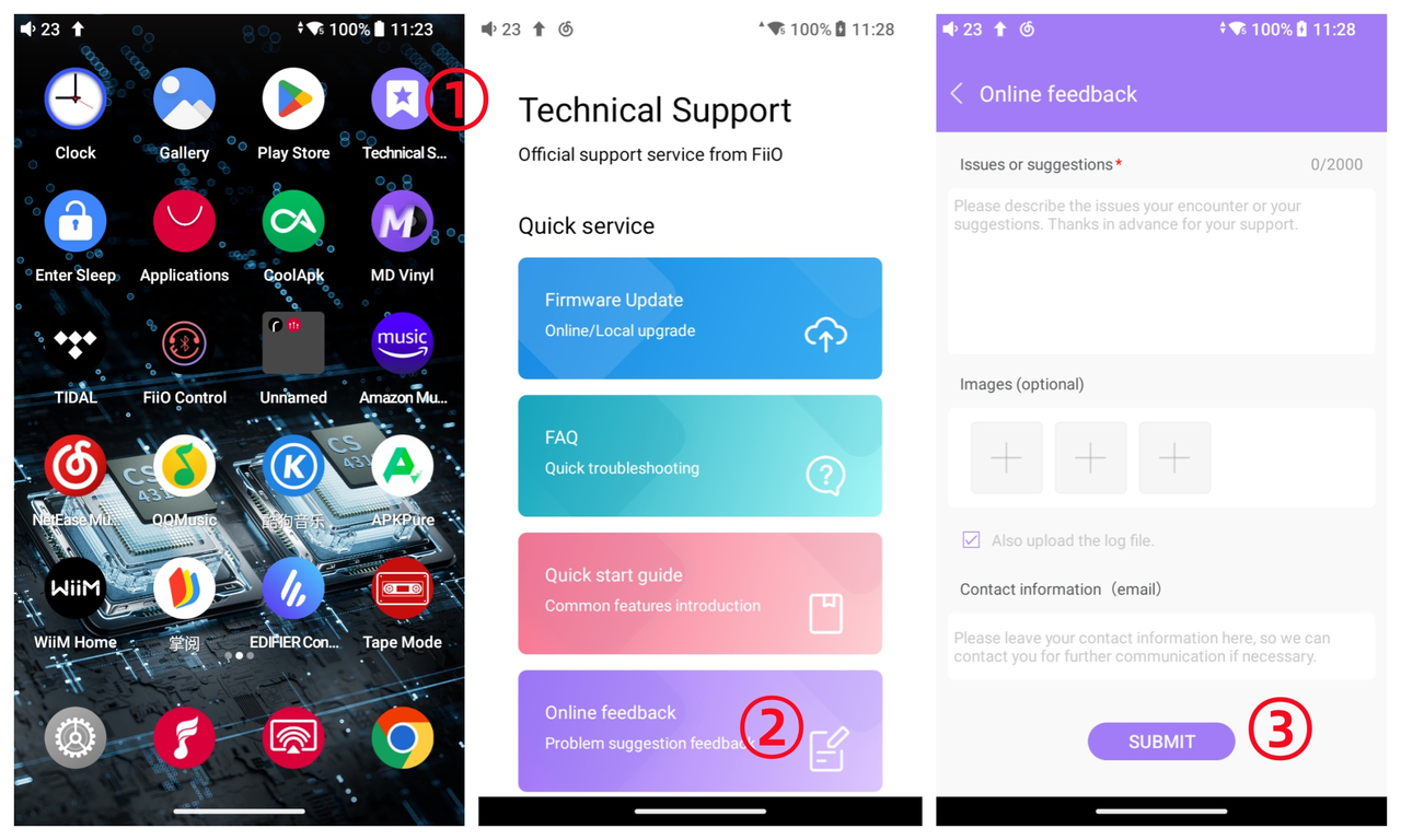 For special software issues, please extract a LOG file from the folder "fiio_log " under the root directory, zip and copy it to the homepage. Then send it to us and inform us the time of the problem for further analysis.