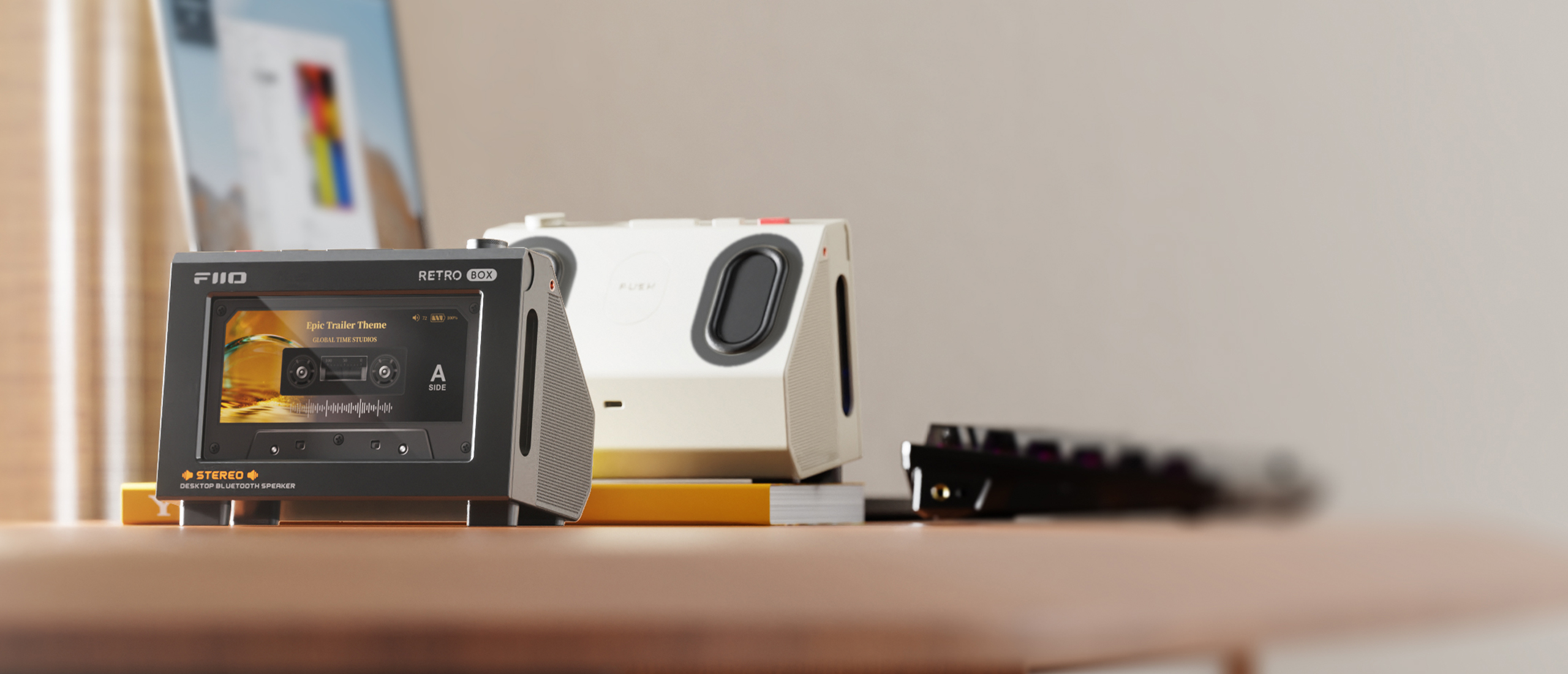 It is the perfect match for the RETRO BOX cassette-style Bluetooth speaker, opening up another way to enjoy music. The versatile UI of the RETRO BOX allows it to serve as both a decorative desktop centerpiece and your portable soundtrack source.