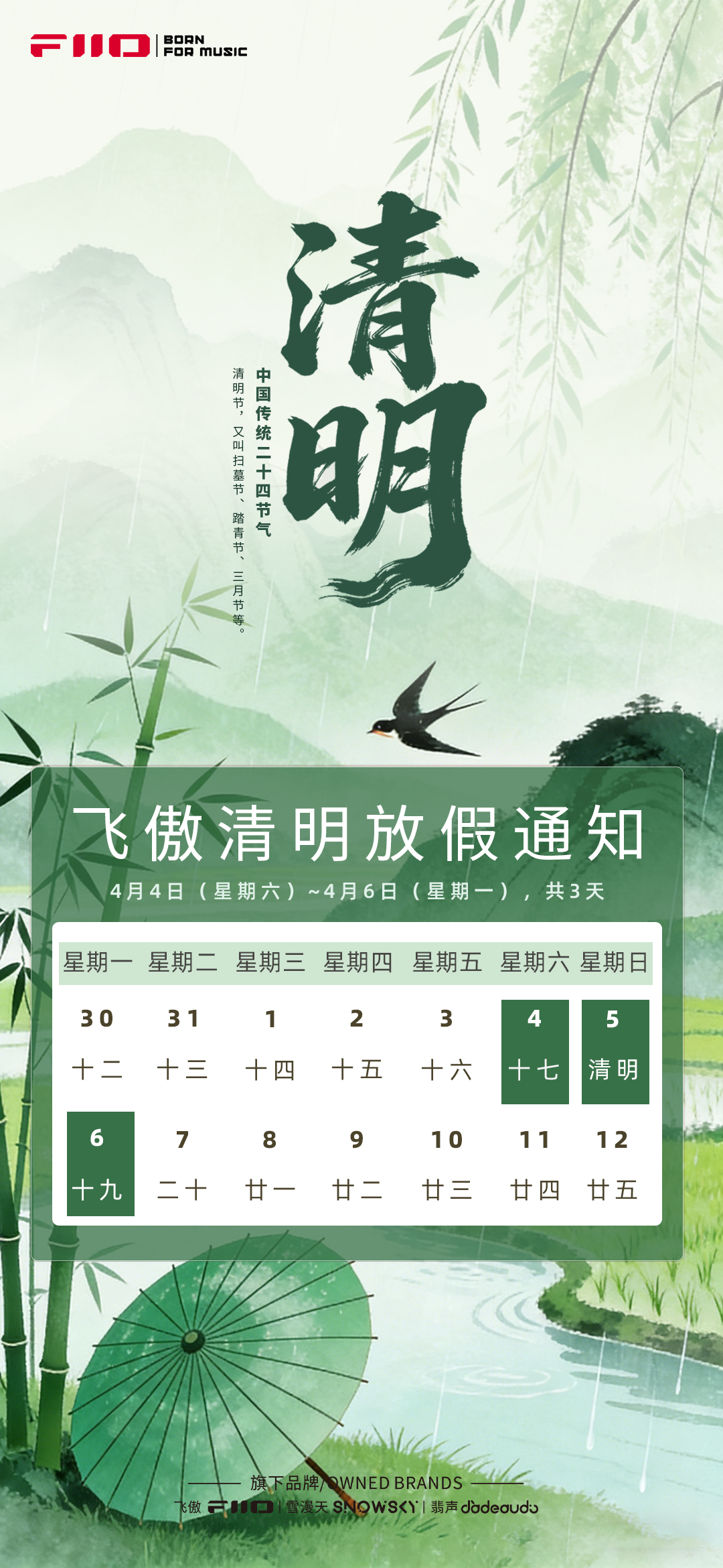飞傲2026清明节放假通知