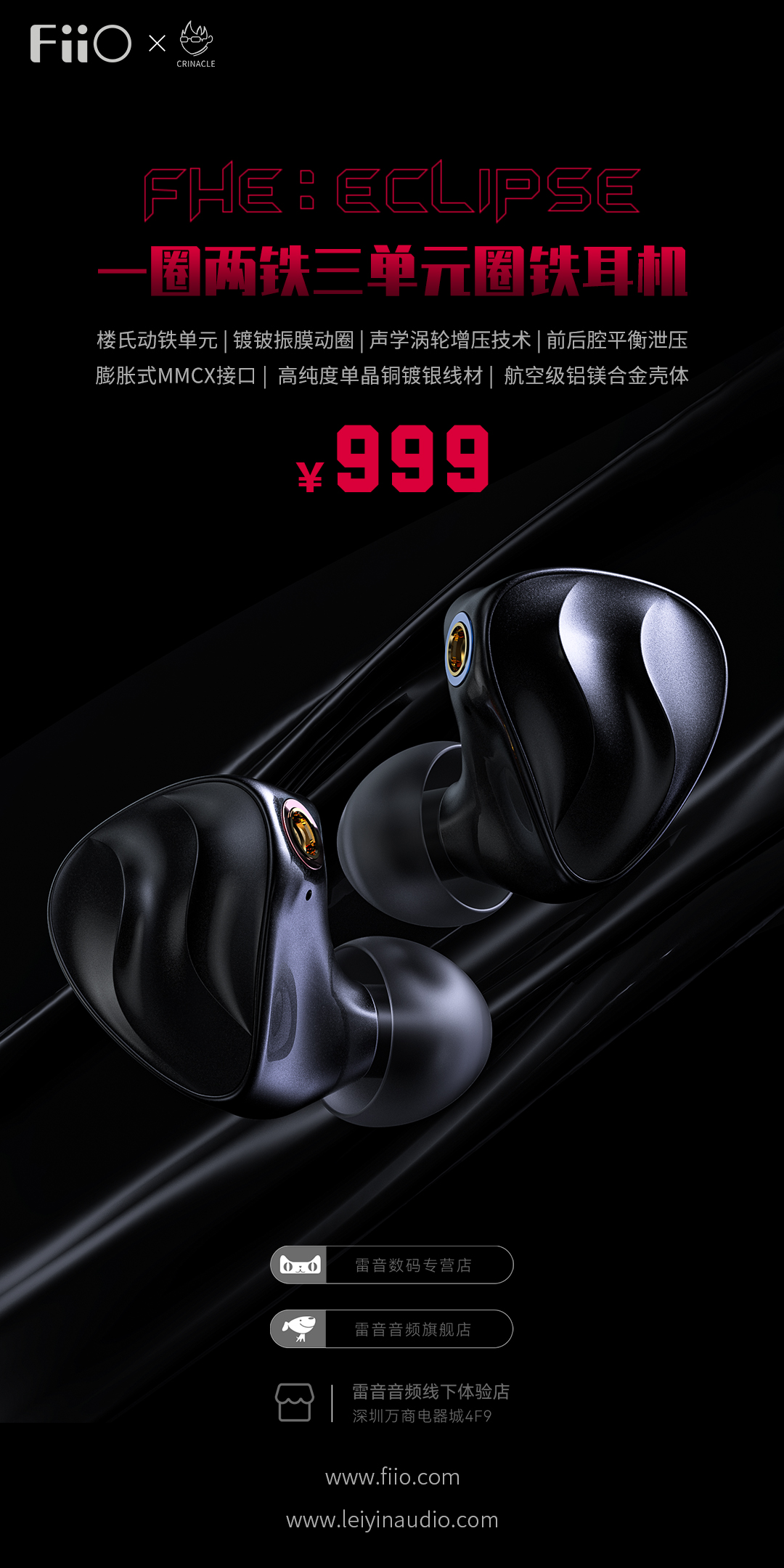 1月11日起, 一圈两铁三单元耳机FHE,全网开售!售价999元。