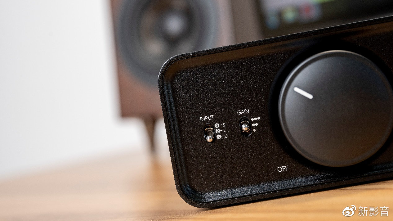 除此之外,两款产品在功能和使用上的各个方面保持一致。机身本身小巧,造型刚正中带有一些圆角矩形的装饰,K5 Pro标志性的大音量调节旋钮在机身的正面很吸引人的目光。耳机接口也仅有一个6.35mm接口,旁边的拨杆是控制增益和信号输入的。当机身正面音量旋钮下面的灯亮起,整个机器的那种科技感配合拨杆操作的机械感是很多男人心中的向往。新影音相信不会有男生能抗拒这台K5 Pro ESS的魅力。如果看完K5 Pro ESS的颜值,再回头去看看其他国产入门产品就没啥兴趣了。