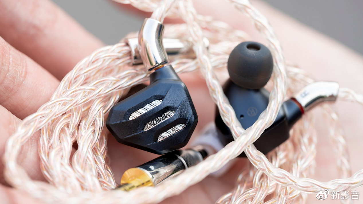 FH7S标配了一条单晶铜镀银线材,腔体是FH系列(除了FH1和FH1S以外)标志性的金属腔体,飞傲其实最近推出的中高端产品都统一改为了金属腔体,旨在提升自己产品的竞争力,也同时提高了产品的可靠性。作为跟FH5S以及FH9同样设计语言的麟甲设计,外壳应该是铝合金CNC切割,棱角要比FH9和FH5S更加分明,跟FH7一样使用了黑色,半开放式设计让金属腔体侧面漏出来银色的金属网罩(用于提升低频的听感和降低佩戴的压迫感),因为耳塞的腔体比较轻盈,内侧也做了大量倒角和圆弧的处理,所以耳塞的佩戴还是非常舒适的,新影音认为甚至于圆弧设计的FH7还要舒适。
