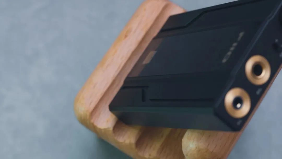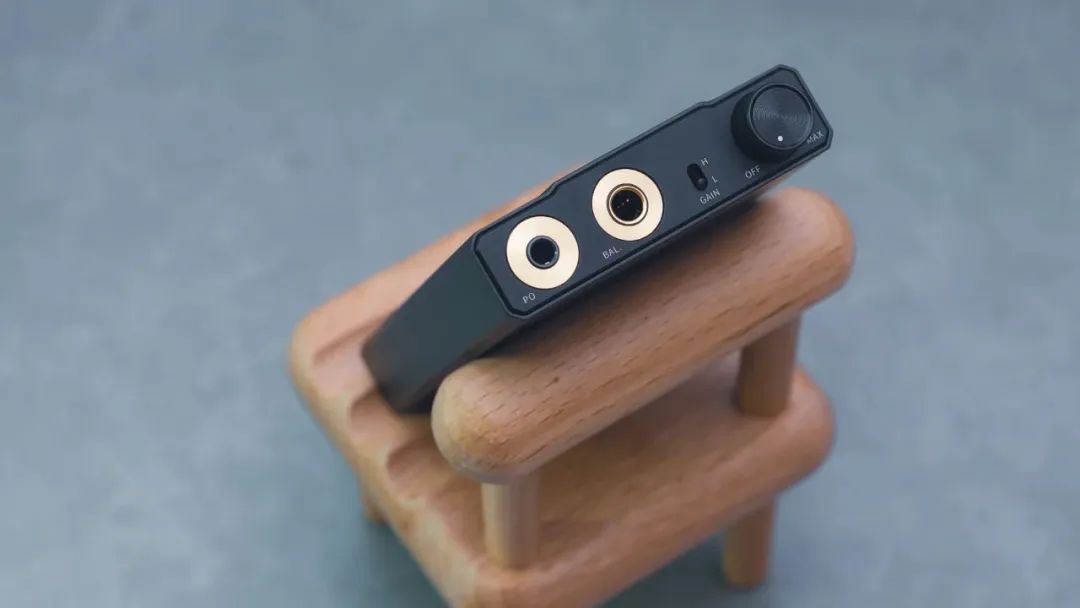 机身顶部依次是电位器&电源、两档增益开关、3.5单端/4.4平衡输出口,底部为Type-C的数据&充电接口和指示灯。