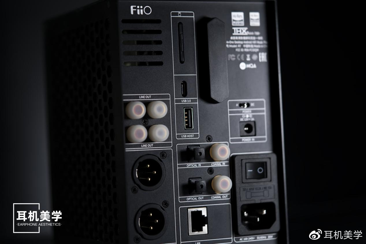 超强的拓展性往往是传统台式机的优势,而这方面R7同样不落下风。相较于简洁的前机身,R7的尾部接口完全可以用面面俱到来形容。双RCA 线路输出,标准光纤、同轴输出, 以及XLR 平衡线路输出接口,都可用于接驳台式功放、有源音箱等后级设备。光纤、同轴输入同样能够支持CD、黑胶唱机等前级。至于USB与Type-C接口,那就更不可能落下了。既然R7以一台桌面小台机自居,那么如何与电脑一同搭建起一套PC HiFi系统,自然是设计伊始就得考虑到位的问题。而即便不依赖电脑,R7也可以通过专属的DP模式实现投屏,在大屏幕上畅享影音娱乐。得益于更为充裕的空间,SD卡槽也换成了大一号的版本。为了避免WiFi信号的干扰,飞傲还特意为R7准备了一个有线网口。此外,R7还支持外接12V的线性电源,给它带来了不俗的升级潜力。