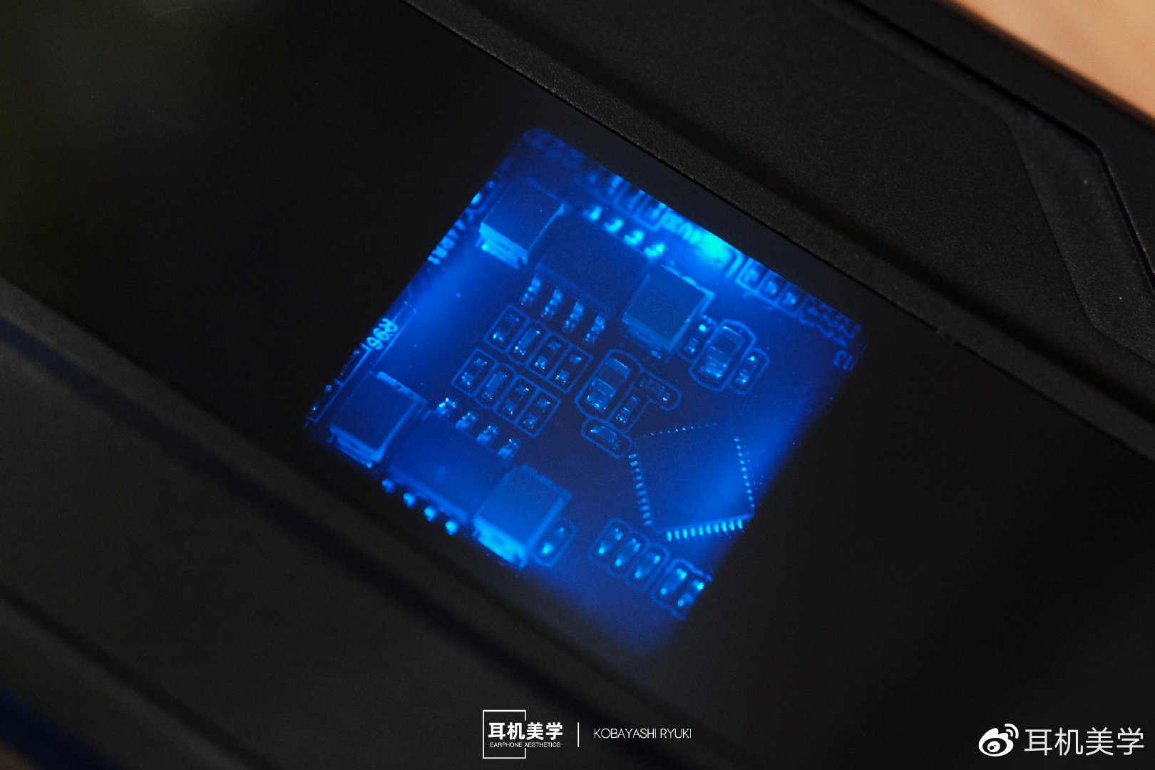 在没开机的情况下是一体的黑色,开机后机身中间被RGB灯珠照亮,显现一个透明开窗,可以看见内部的元器件,很有科技感,RGB灯也会根据输入音源的码率进行颜色的切换。