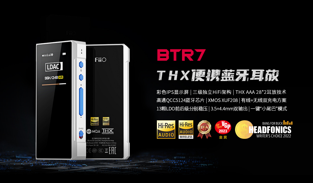 5.飞傲THX便携解码蓝牙耳放BTR7 白(媲美HiFi播放器的完整音频架构、彩色显示屏、支持无线充电)