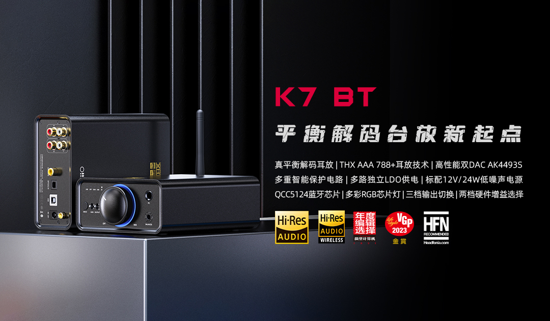 3.飞傲台式解码耳放K7BT(真平衡输出、推力大、支持LDAC/aptX HD/aptX Adaptive等高清蓝牙格式)