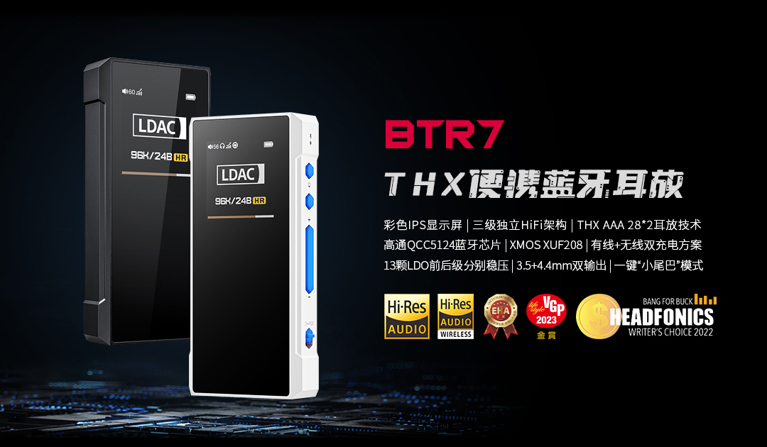 5.飞傲THX便携解码蓝牙耳放BTR7 白(媲美HiFi播放器的完整音频架构、彩色显示屏、支持无线充电)