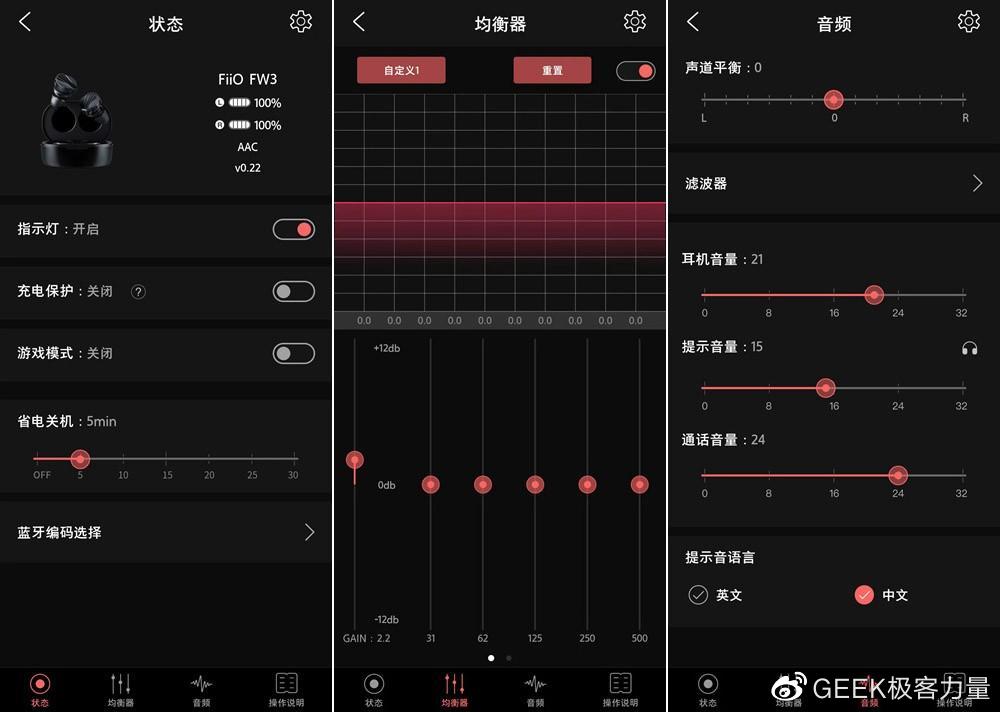 比较有意思的是,配合飞傲家开发的FiiO Control应用,针对这款TWS耳机还能带来极致个性化的调音体验,除了常规的EQ均衡调节外,还支持长按菜单进入下一级更为专业精细化PEQ调音,以及针对声道平衡、数字滤波和综合音量方面的调节,此外包括百分比电量、充电保护、游戏模式、自动休眠及蓝牙编码选择都能通过这款应用达成相应的功能。有一说一,论适配APP开发的功能专业性和用户体验度,飞傲完全不输一众做TWS耳机的手机大厂。