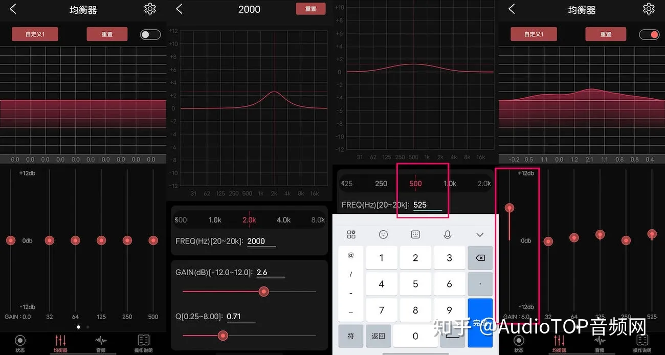 首先频点的调节范围很大,上下各有12个db;其次,每一个频点还能调Q值,这就很神奇了。