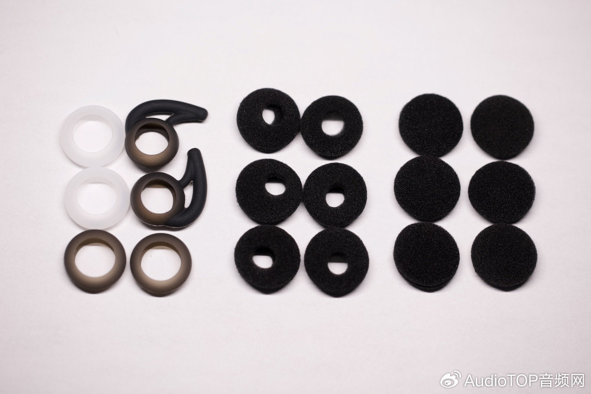 附件:3对硅胶套,其中一对带鲨鱼鳍;6对海绵套,其中3对是中空。