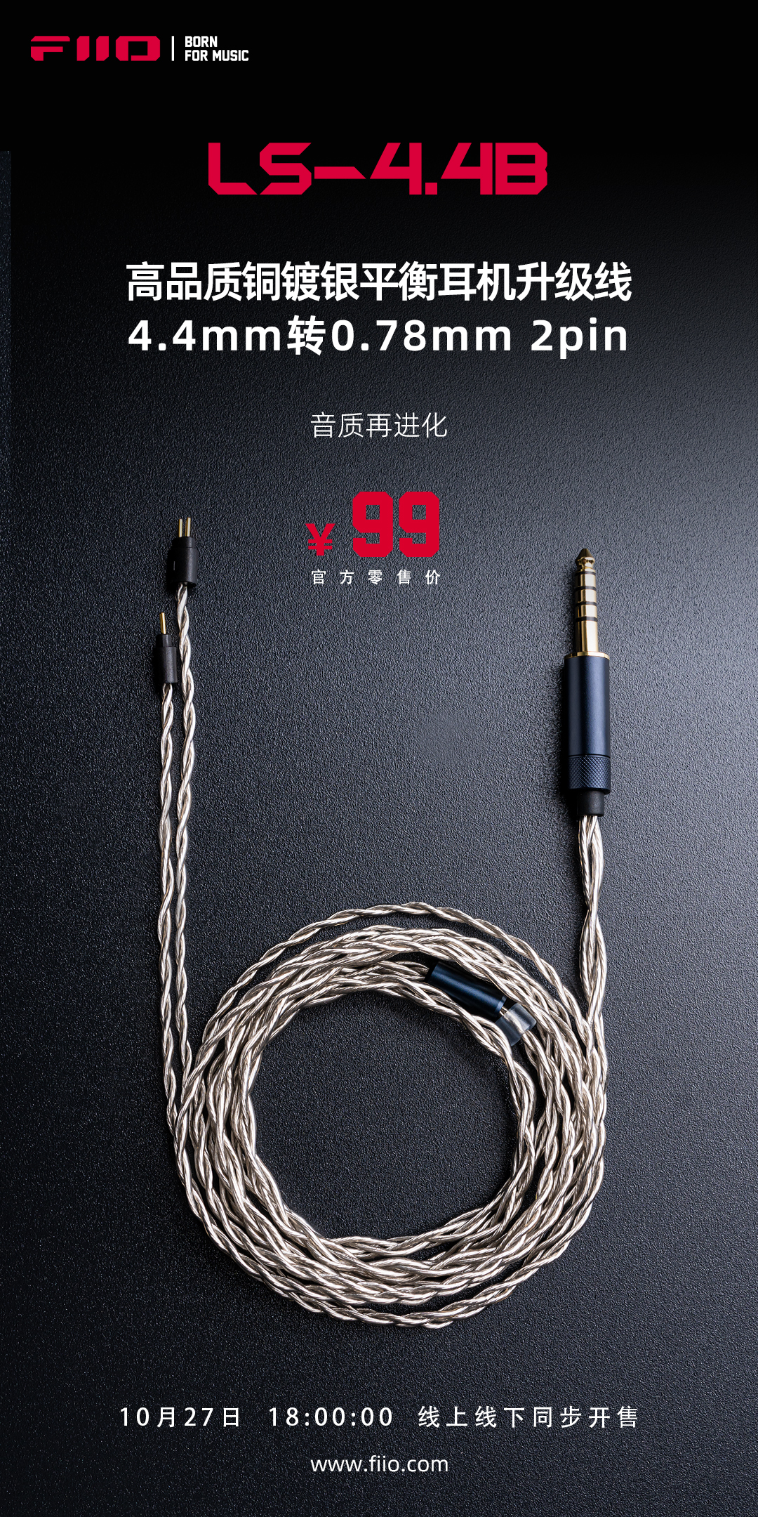 高品质铜镀银平衡耳机升级线LS-4.4B,正式上市!