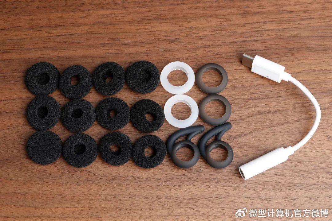 除了USB-C转3.5mm转接头,FF1的附件中还包括了3对通透海绵套、3对低频海绵套以及不同大小的防滑硅胶环和鲨鱼鳍硅胶环各1对,在同价位产品中算是相当丰富的了。我逐一体验了一下,单就舒适度来说,裸塞就不错,很轻,在耳郭中的存在感低,当然稳固性要差一点。两种海绵套的舒适度也可以,同时能增加一定的佩戴稳固性。换上防滑硅胶环,稳固性则提升不少,其中透明的L号又好于黑透的M号,但前者的舒适度要差一点。鲨鱼鳍硅胶环在同类产品的附件中很少见,其佩戴稳固性最好,舒适度也好过L号的防滑硅胶环,就算是在慢跑时也适用。