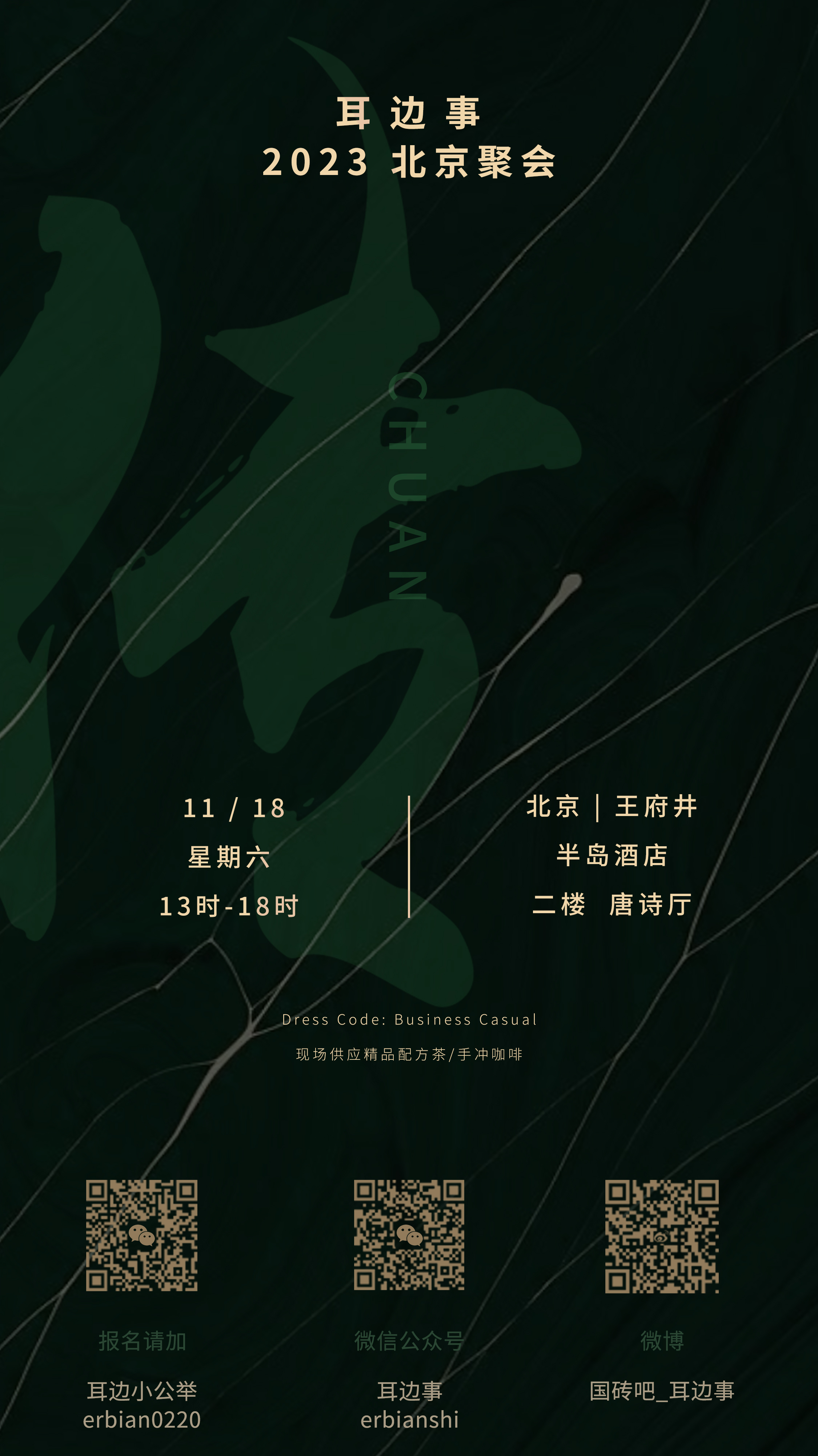 需要注意的是,本次耳边事聚会在北京半岛酒店举办,酒店对着装有一定的要求,还请大家留意耳边事关于聚会的详细报道。