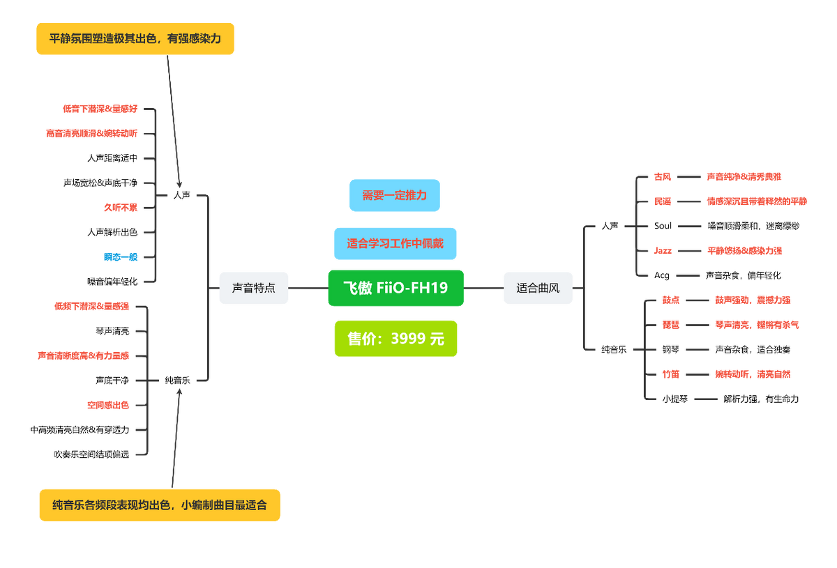 FH19有着普适的适用场景以及久听不累的声音表现,杂食且舒适的调音风格对于听歌风格很广并且不常听那种特别动感歌曲的烧友来说FH19是一款相当不错的选择,繁多的配件增强了FH19的可玩性的同时也使得其能够被更多烧友所接受。