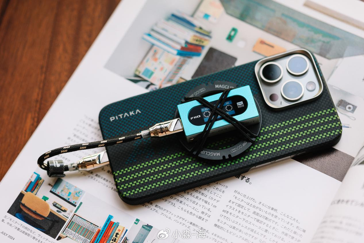 也许官方也非常希望你能够随时携带着 KA15,其机身上是设计了挂绳孔的,附赠的皮套也依然保留了挂绳位的设计,即便不挂着,往上面绑着一些个性饰品应该也蛮有意思的。不过话说回来 KA17 为了保证旗舰性能,尺寸确实偏大,像是塞进我的 LEPIC MagSafe DAC Pocket 根本不行,只有小巧的 KA15 尺寸正好,当然用飞傲自家的 MagClip 进行捆绑或许会更为合适,因为不会挡住 KA15 那最为核心的屏幕。
