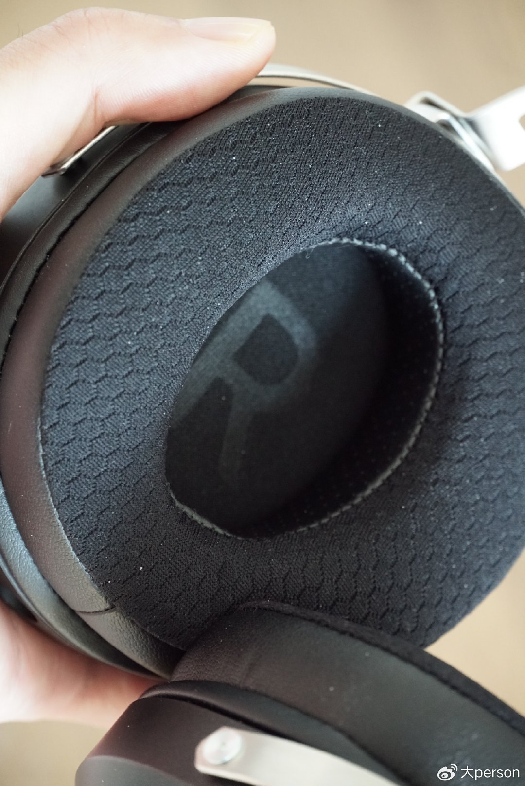 耳垫厚度较大,表面覆有“透气型织物”,触感会比较干燥,织物上布满孔隙,如遇汗水,会散发的比较快,比起类皮材料,这种材质明显利于散热。